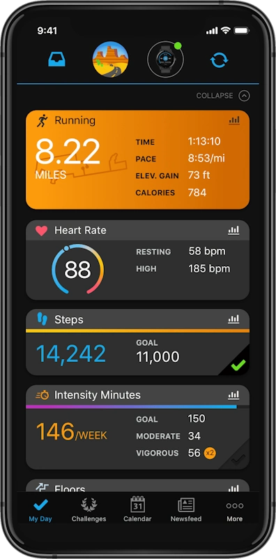 The for this watch is the Garmin Connect app, it is the same app for all their watches and it is available for both Android and iPhones. Once installed, you will use the app to pair your new watch with your smartphone. For me it was very easy and intuitive. It found my new watch in second and asked me to confirm the code on the display of the watch on my phone. Once the paring is done, the guide asks a couple of questions regarding gender, height/weight and a couple of other questions to give the best health feedback.