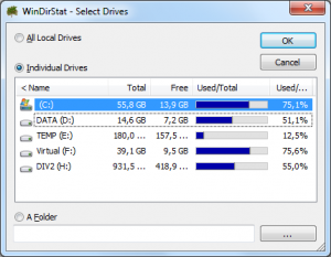 The other day I came across a smart little program called Windirstat. After trying it out I thought I would share it with your guys, because it is pretty awesome tool. What it can do for you, is to scan and analyze a hard drive or just a folder after your choice. Afterwards it will then show you what type of files is filling up your drive. It can also show you, how much space each folder and subfolder are using. If you ask me, It is a great tool of you need to free up space on a hard drive.