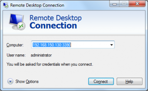 In order to tell your remote desktop client to connect to the new custom port you will have to add the port number after the IP address or name you are connecting to. E.g. 192.168.150.130:3390 Per default the RDP client will always try to connect using port 3389.